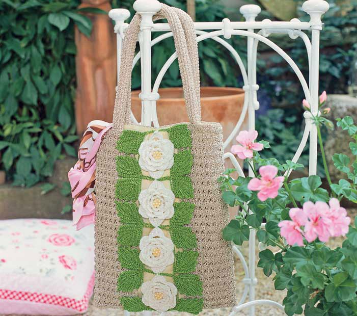 Рассмотрим уроки вязания сумки, которую украшают ирландские цветы и листья. Несмотря на подробные схемы с описанием, новичкам будет сложно справиться с заданием.