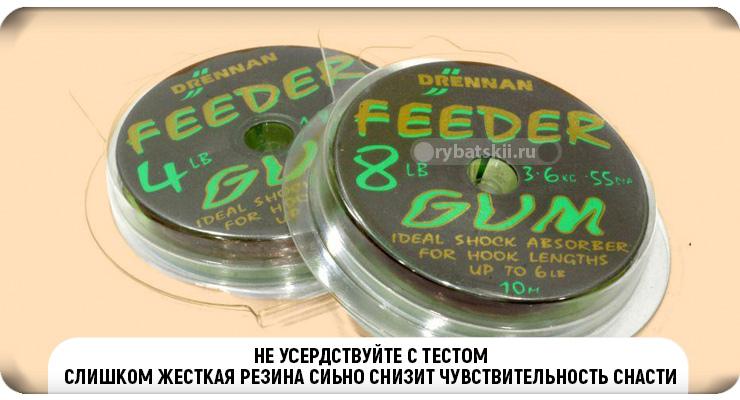 Раньше фидеристы использовали для амортизации простую резинку для бисера, которую за смешную цену можно купить в любом магазине типа «Все для шитья». Но специальная рыболовная резина Feeder gum прозрачная, обладает повышенными абразивными свойствами, меньшей растяжимостью и большей плотностью. Бисерная резина слишком мягкая и быстро стареет. Хотя с таким утверждением некоторые рыболовы могут и поспорить.