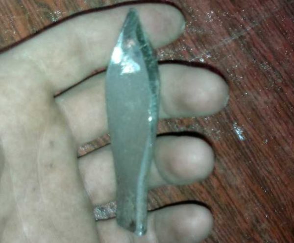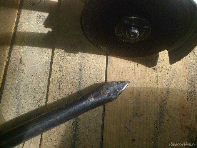 А потом обрезал углы болгаркой, придав сплющенному концу вид острия: