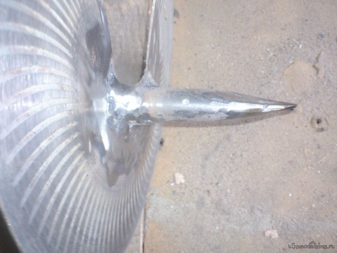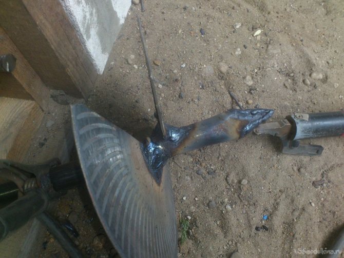 Итак, продолжим… Нет худа без добра. Зато проварить по всей окружности стало уже легче — ведь на диске уже был наварен пластичный металл))). А заодно был заварен и носик-остриё: