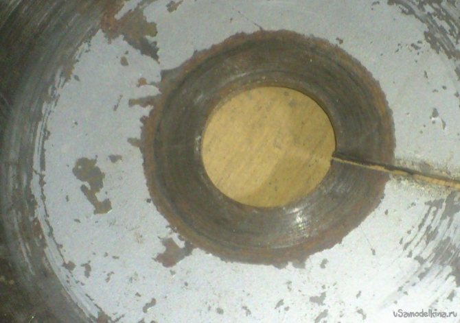 Сначала я думал опустить это в описании, но сейчас решил предостеречь тех, кто, возможно, захочет повторить. Внимательно изучите ваш диск — нет ли в самой ступице вот такого кружка из инородного металла, который я, «не заостряясь», принял за след от прижимной гайки: