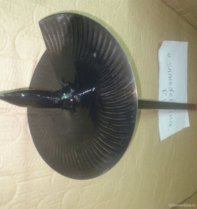 В самих дисках по центру придется вырезать отверстия — чтобы они плотнее прилегали к стержню, но эта операция требуется и при монолитном варианте — с приваренными лопастями.