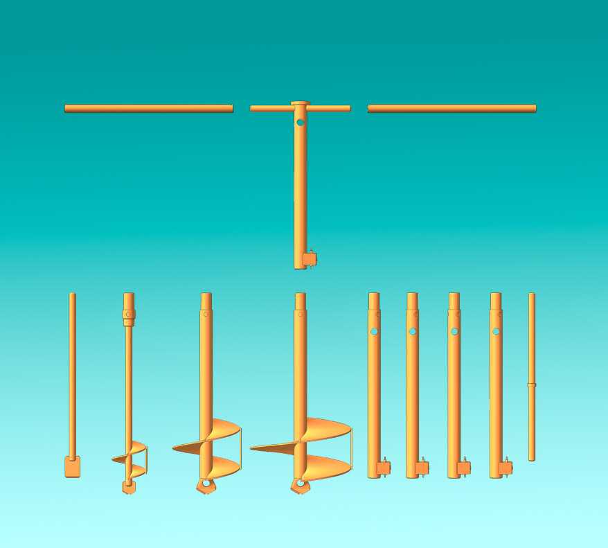 Бур для столбов может быть со сборной штангой - Стержень. Это круглая или профилированная труба (квадратного сечения). Может быть также использован лом, но он очень тяжелый и работать им будет сложно. Длинна стержня — требуемая глубина шурфа плюс 50-60 см. Если сделать короче, то последние сантиметры придется бурить в глубоком наклоне, что совсем не легко. Если при таком расчете общая высота получается выше чем 1,5 метра, имеет смысл сделать сборную штангу. Тогда стержень наращивают отрезками трубы того же диаметра, придумав систему сочленения.