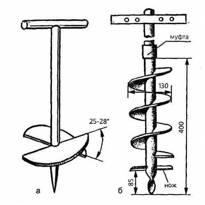 При строительстве дома и обустройстве участка часто требуется сделать круглые отверстия в земле. Они нужны при устройстве ограды — под установку столбов, при постройке беседок, установке арок и других легких хозяйственных сооружений. Такие же шурфы, но большего диаметра и глубины требуются при устройстве свайного фундамента. Делают эти ямы моторизованным или ручным буром. В магазинах они есть в достаточном количестве, но многие предпочитают самоделки: зачастую они более производительны и надежны, чем фабричные изделия. К тому же бур своими руками можно сделать любой конструкции, а их немало.