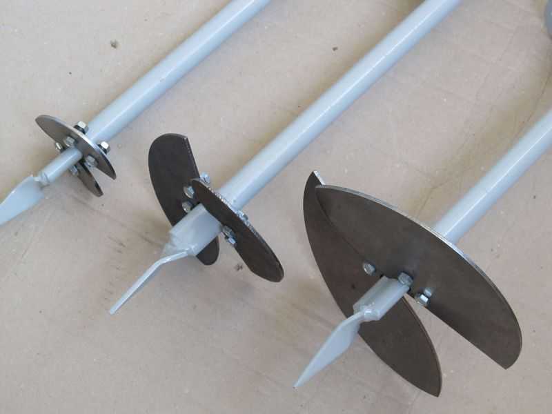 В плотных грунтах бывает сложно большими лопастями резать грунт. В таком случае на стержень приваривают несколько лезвий разного размера. Снизу, возле пики, наваривают самые маленькие, выше, отступив несколько сантиметров — большие. Таких ярусов может быть три, максимум — четыре. Вся режущая часть не должна быть больше 50 см, иначе работать физически очень сложно.