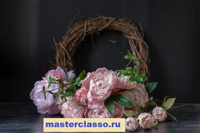Для венка из высушенных пионов: