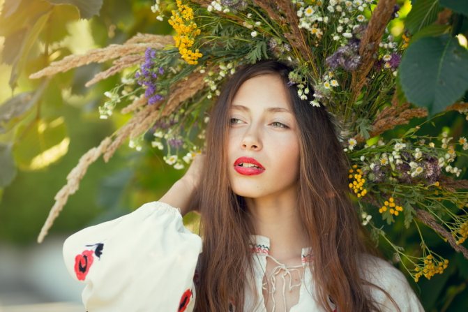 Ни один обряд или празднество не могли обойтись без ритуального украшения из цветов. Их вешали на дверь в качестве оберега, подкладывали роженицам для облегчения схваток и предотвращения сглаза. Особенно важно было знать, как плести венки на Ивана Купала. Такой аксессуар считался мощным средством против нечистой силы, способным защитить свою хозяйку. Это связано с тем, что в украшение вплеталась полынь, которая, по поверьям, обладает магическими свойствами.