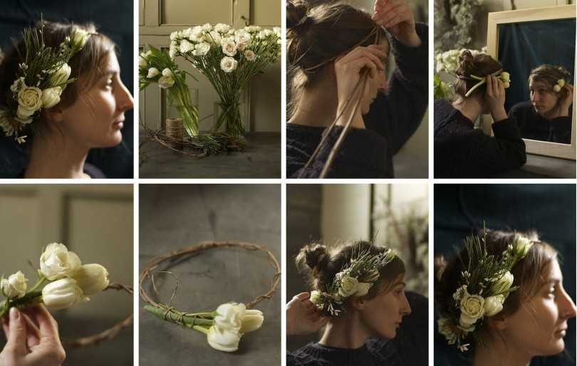 Как сделать свадебный венок из живых цветов на голову?