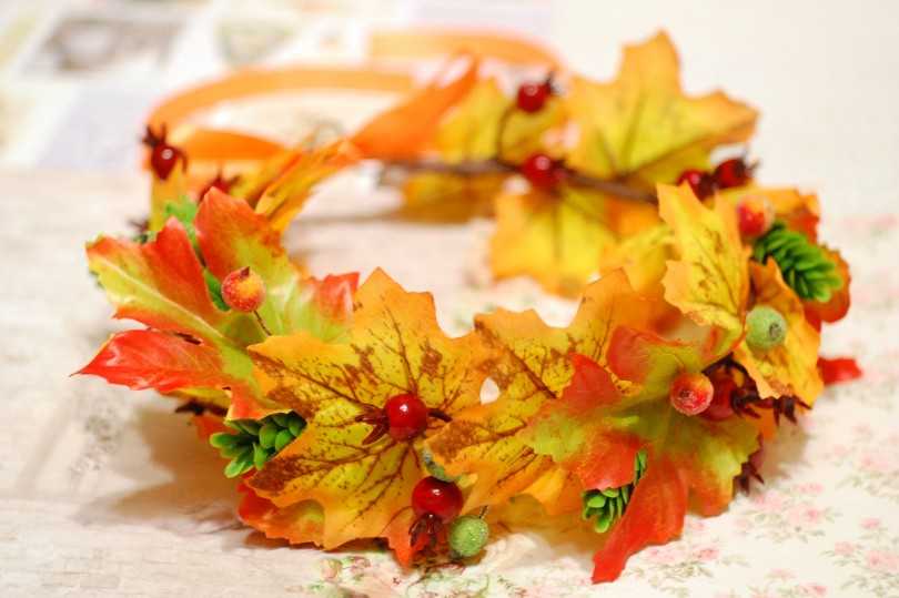 Венок из цветов – это, в первую очередь, аксессуар для весны и лета. Единицы могут гармонично сочетать его в зимнее время года. А вот осенью дело обстоит иначе. Из красочных кленовых листьев получается нечто особенное.