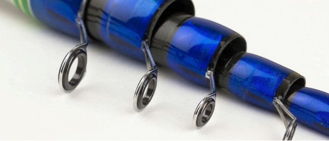 Качество пропускных колец используемое в удилище, должно быть на высоте. Наиболее предпочтительны кольца с керамическими вкладышами внутри. Такая конструкция имеет минимальный коэффициент трения и не повреждает леску при забросе и вываживании рыбы.