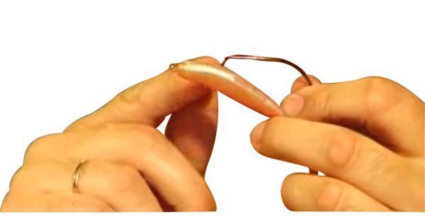 Важно! Ус крепится к основанию крючка или непосредственно к телу блесны, прижимаясь вторым свободным концом к острию крючка.