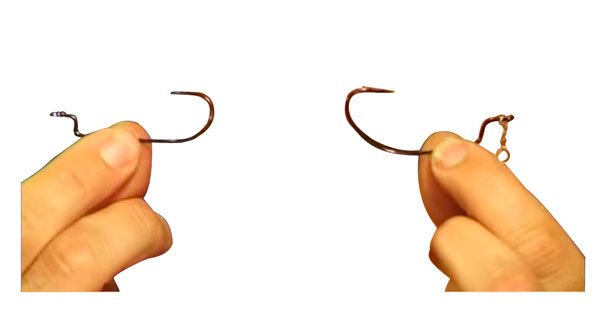 Крайне важно, имеется ли переходное звено в передней части офсетника либо нет. Дело в том, что в случае если мы берем офсетный крючок, то колечко у него имеет весьма мелкий диаметр, и продеть в такое колечко заводное кольцо достаточно сложно.