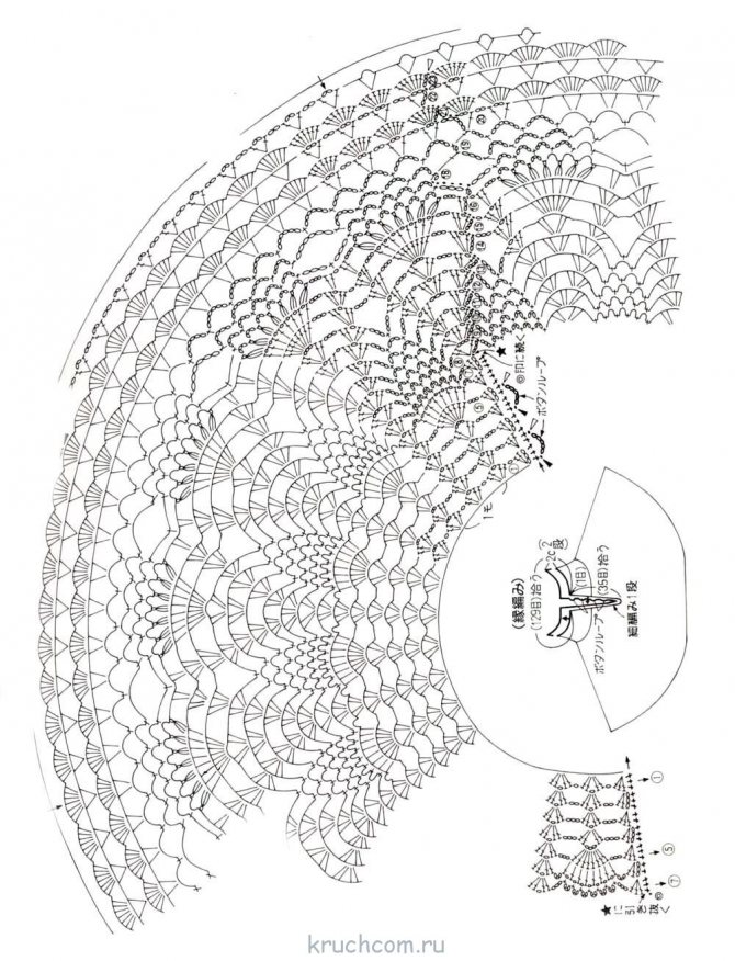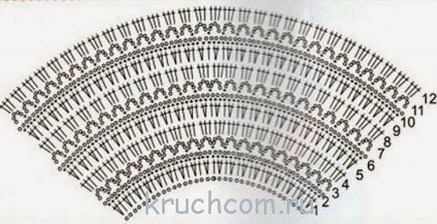 Кокетка вяжется круговыми рядами, ажурным узором согласно схеме.
