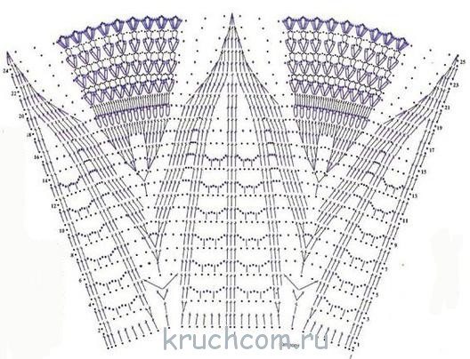 Ряд №12 и все последующие четные ряды: вяжем полустолбиками.Ряд №20 вяжем 86 ПС в след. 86 ПС ПР.