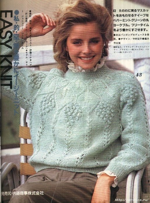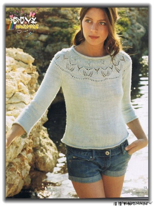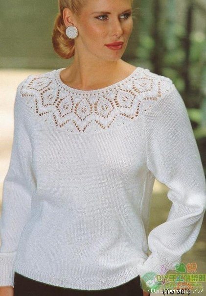 Ажурная кокетка, связанная регланом сверху, помогает подчеркнуть женственность и деликатно избежать проблемы посадки по фигуре при покатых и узких плечах. Ее в последнее время все реже публикуют в модных журналах по вязанию, предпочитая предлагать вниманию рукодельниц модели, связанные снизу, хотя она по прежнему популярна и ее умение представить фигуру в выигрышном свете очень ценят дизайнеры, поэтому в коллекциях ажурная кокетка не редкость.