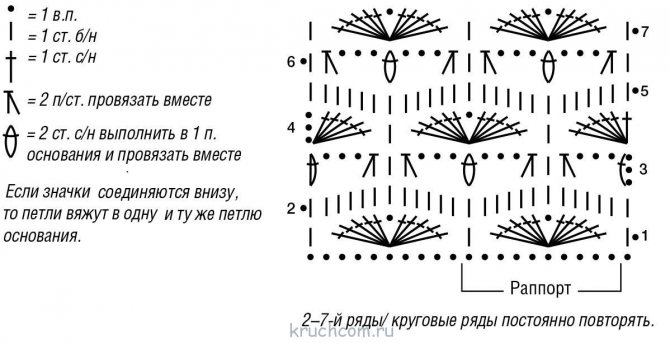 Ряд №7: в каждой группе ССН вяжем не 8, а всего 6 столбиков с/н.