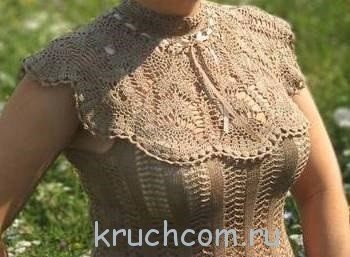 Рассмотрим вязание крючком красивейшего топа, который можно носить как под юбку, так и под джинсы или шорты. Выполнение круглой кокетки крючком совсем не сложное, подробное описание и схемы помогут Вам справиться с заданием.