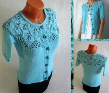 Ажурная кофточка на круглой кокетке с узором ананас