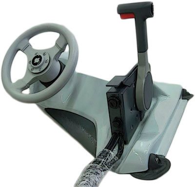 - Механическая рулевая система имеет преимущество перед гидравлической в простоте конструкции и относительно низкой цене, но уступает в точности управления моторами. Она состоит из механического рулевого редуктора, троса, рычага и рулевого колеса. Чем мощнее двигатель, тем сложнее его управление, для каждой группы двигателей нужен подходящий редуктор, но при мощности более 150 л.с. рекомендуется устанавливать гидравлическую систему.