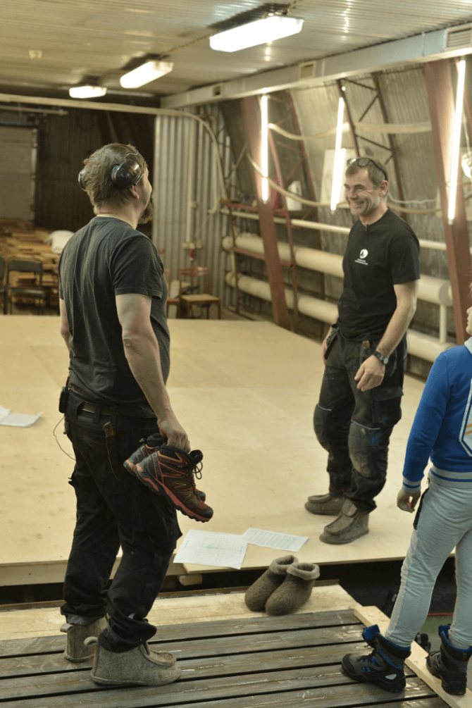 Чуть не забыл сказать, что работать на разметочном полу нужно в чистой обуви. Отлично подходят для этого войлочные обувки с архангельского рынка, не знаю, как их правильнее назвать. Возможно, чуни.