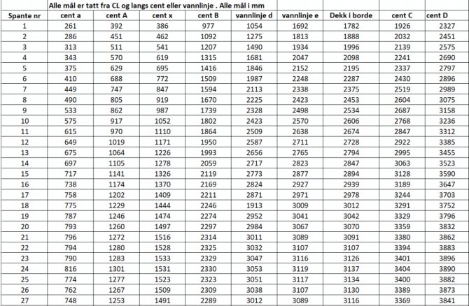 Используя линии как систему координат можно построить все шпангоуты. Для этого Мортен прислал нам табличку с данными точек каждого шпангоута.