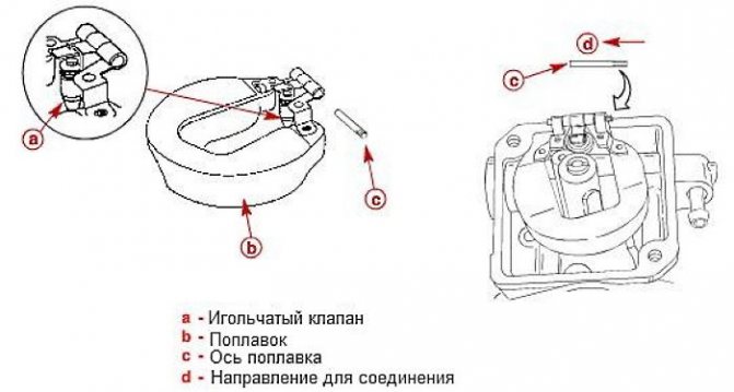 Изменяя угол язычка поплавка, можно отрегулировать уровень топлива в камере. При увеличении уровня топлива язычок толкает запорный клапан и он в свою очередь перекрывает подачу топлива. Язычок встроен в корпус поплавка и его (язычок) чаше всего делать из мягкого металла и как раз изменив немного угол язычка можно заставить клапан раньше или позже перекрывать подачу топлива. Но не спешите сразу гнуть его на 45%, изменять угол нужно совсем чуть чуть. Для этого хорошо подойдет плоская отвертка. После изменений проверяйте работу мотора. Каких то более конкретных рекомендаций дать не можем, т.к. все модели индивидуальны в этом отношении. Можете заглянуть в мануал своего мотора и посмотреть заводские настройки карбюратора и сравнить с текущими и попробовать откорректировать в случае расхождений.