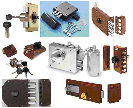 - механический — ключ для засова, ручка, открывающая защёлку, нажатие выбранного кода;